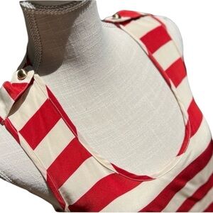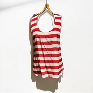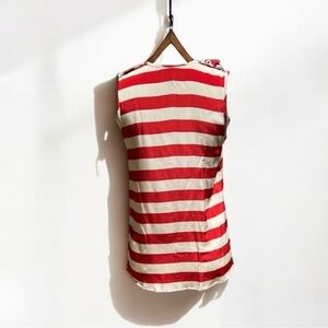 🌻Karina Grimaldi Red & Off-White Stripe 100% Silk Tank Blouse w Epaulets Size S