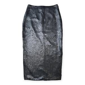 Karina Grimaldi | S | Hayve Black Shingle Sequin High Side Slits Midi Skirt