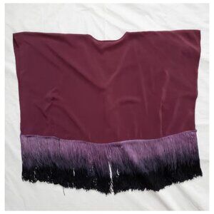 Karina Grimaldi 100% Silk Plum Color Ombre Handkerchief Fringe Hemline Flowy Tunic Top - Size S