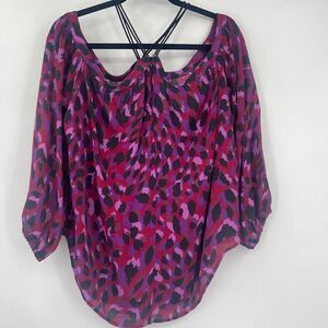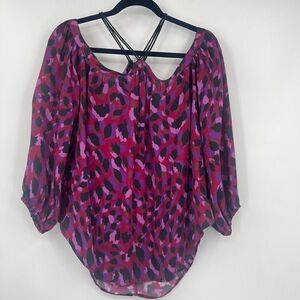Karina Grimaldi Women's Pink Long Sleeve Animal Print Off Shoulder Top Size Small