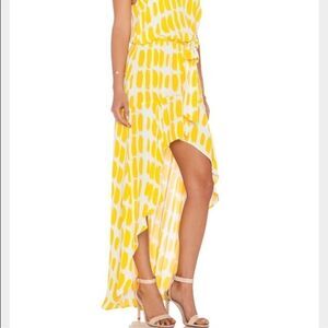 Karina Grimaldi Yellow Alma High Low Ruffle Deep V Neck Maxi Dress Sz M