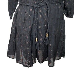 Features: V-neckline, fil coupé dot detailing, detachable braided belt, relaxed fit, mini length