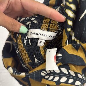 Karina Grimaldi Black and Yellow One Shoulder Sleeve Tank Top - Size Medium NWT Floral Design 💙