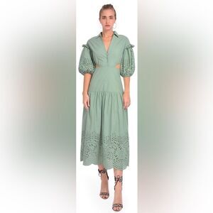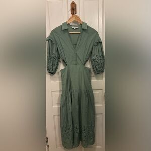 Like New Karina Grimaldi Graciela Cutout Midi Dress Cucumber Green Size Extra Small XS. 100% Cotton. Luxurious material and high quality design! Feel free to message me with any other questions. 😊