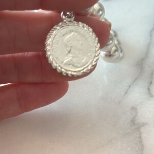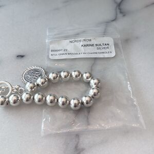 This is brand new in excellent condition. It is a muted silver finish. Toggle clasp. Comes in the poly bag.