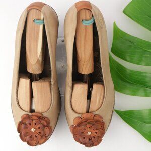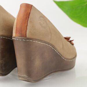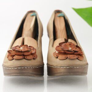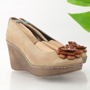 Karino Womens Pump Size 36 6 Tan Taupe Suede Wedge Platform Big Flower Boho Chic