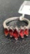 TAGS: karis collection mozambique garnet ring, five gemstone ring, platinum bonded brass, silver tone ring, january birthstone jewelry, marquise cut ring, red garnet ring, stackable garnet ring, UK jewelry brand, January birthstone gift, red garnet size 7 ring, 5 stone ring, Mozambique garnet jewelry, red ruby color ring, January birthday gift, unisex garnet ring