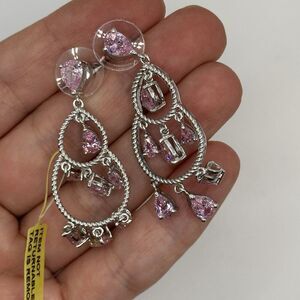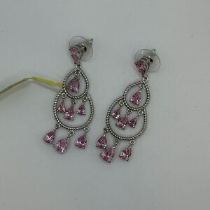 Karis Platinum Bonded Earrings Tiered Dangle Drop Pink Stones New