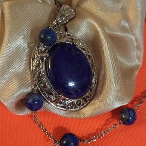 Karis, New, Stamped, Blue Lapis Lazuli Necklace, 18 Inches, Platinum Plating.