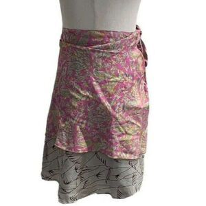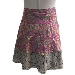 Kariza Womens Floral Silk Pleated Mini Skirt One Size Multicolor Tie-Waist NWT