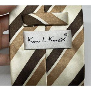 Karl Knox Mens Brown Neutral Striped Tie Mens Neckwear Handmade 100% Polyester.