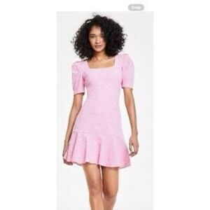 Karl Lagerfeld 14 Square Neck Drop Waist Mini Dress Pink Tweed Preppy Coquette