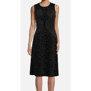 Karl Lagerfeld A-Line Dress Sz 16 Black Leopard Print Scuba Cocktail Modern Artsy