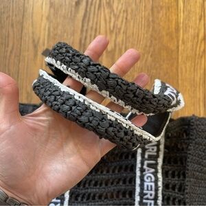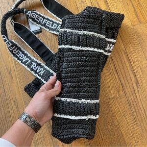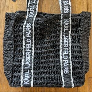 Karl Lagerfeld Antibes Straw Tote Beach Bag Logo Strap Black NWT