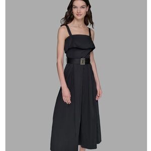 Chic black dress with a stylish belt. Perfect for formal occasions. Never worn. Still has all the tags.