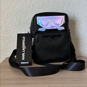 Karl Lagerfeld Black Crossbody Bag with Iridescent Shades Accent