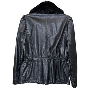 Karl Lagerfeld Black Genuine Leather Jacket W/Detachable Faux Fur Collar Medium