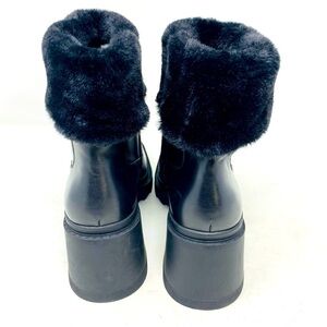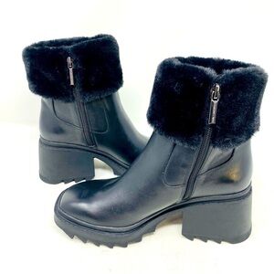 Karl Lagerfeld Black Leather Faux Fur Lug Sloe Booties Size 6