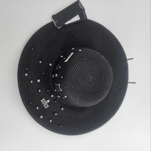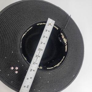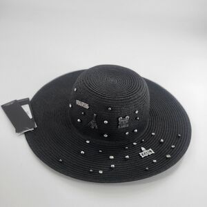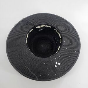 Karl Lagerfeld Black Paper Blend Wide Brim Sun Hat Pin & Stud Accents New