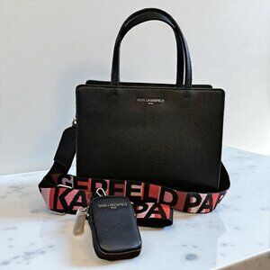 Tags: Karl Lagerfeld Paris, Black, Satchel, Tote, Bag.