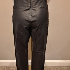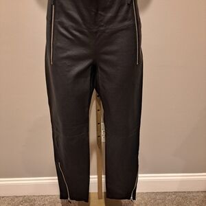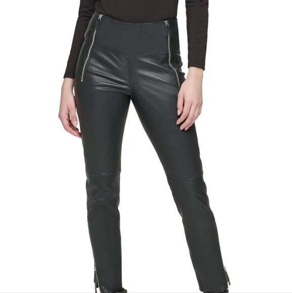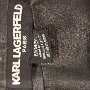 Karl Lagerfeld Black Straight Leg Leather Cargo Pants with Zipper Accents