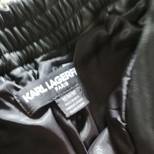 These black straight leg pants by Karl Lagerfeld offer a sleek and sophisticated look, perfect for any occasion. Crafted from high-quality materials, they provide a comfortable fit with a modern edge. The timeless design ensures versatility, making them a staple in any wardrobe.
