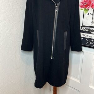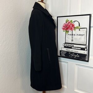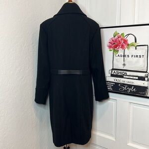 Karl Lagerfeld Black Wool Coat with Faux Leather Details Size L
