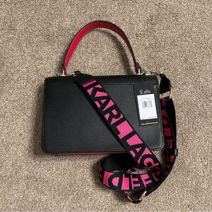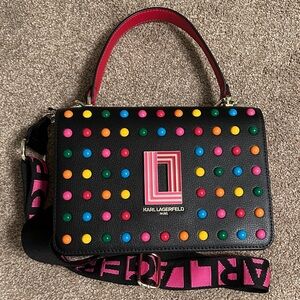 Karl Lagerfeld Black/Pink/Red Dot Simone Front Flap Crossbody Bag, NWT