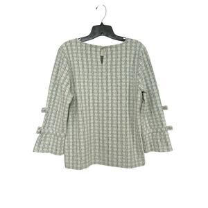 Karl Lagerfeld Black/White Checkered Window Pane 3/4 Sleeve Bow Knit Top Size M