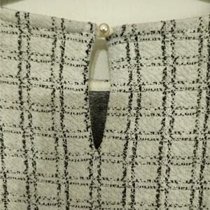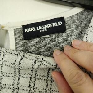 Karl Lagerfeld Paris Black/White Checkered Window Pane 3/4 Sleeve Bow Knit Top, Keyhole back, Polyester/Rayon/Cotton. Excellent condition! Size Medium