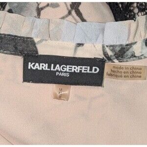 Karl Lagerfeld Blouse M Women's Pink Floral Lace Trim Bell Sleeves Tie Neck Sz M Light wear, stain free Pink, floral pattern, lace trim, 3/4 bell sleeves, tie neck, blouse Bust: 40" Sleeve: 25" Length: 26 1/2" Thanks for stopping by!
