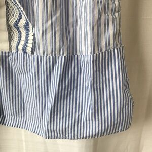 Karl Lagerfeld Blouse White And Blue Striped Ruffle Button Up Size Medium