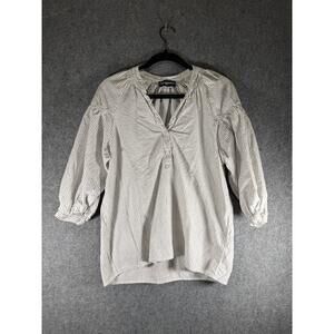 Karl Lagerfeld Blouse Women Medium Striped Balloon Sleeve V Neck Boho Career