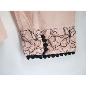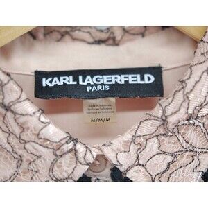 Karl Lagerfeld‎ Blouse Womens Medium Pink Peach Button Cuff Collar Lace Trim