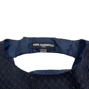 Karl Lagerfeld Blue Textured Ruffle Keyhole Dress