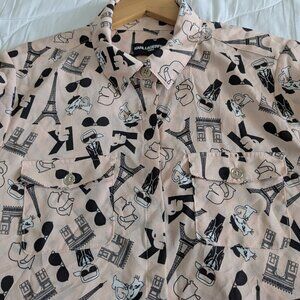 Karl Lagerfeld Button-up Blouse Women's Medium Pink Graphic Cats Paris Top