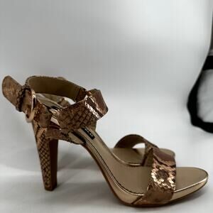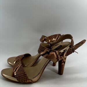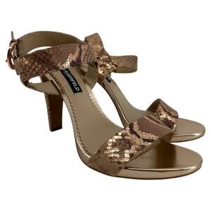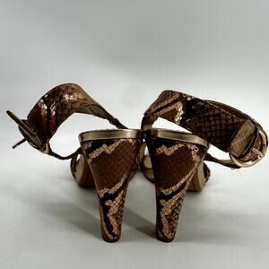 Karl Lagerfeld Cieone Sandals Leather Heels Ankle Snakeskin Metallic Gold 9.5M