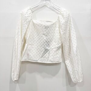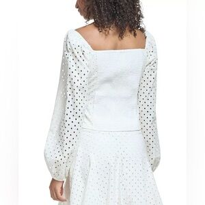 Karl Lagerfeld Cotton Eyelet Square Neck Top White Size Small