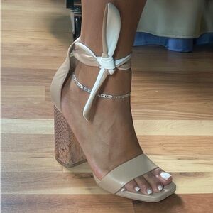 Karl Lagerfeld Paris nude open toe wrap around ankle heels size 9