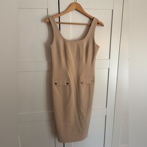 Karl Lagerfeld Crepe Sheath Dress in Tan Size 4 Midi length