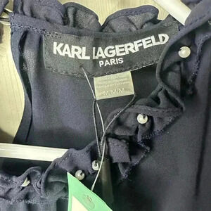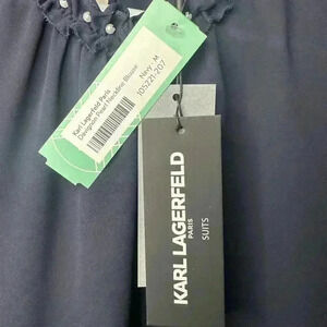 Karl Lagerfeld Davignon Pearl Neckline Navy Blouse Stitch Fix NWT Medium