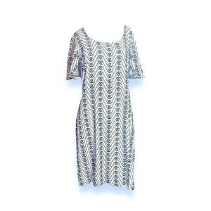 Karl Lagerfeld Dress Short Flutter Sleeve White Navy Embroidery Womens 6