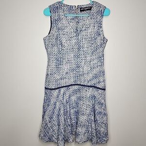 Karl Lagerfeld Drop Waisted Tweed Sleeveless Dress - Blue, White Sz 8