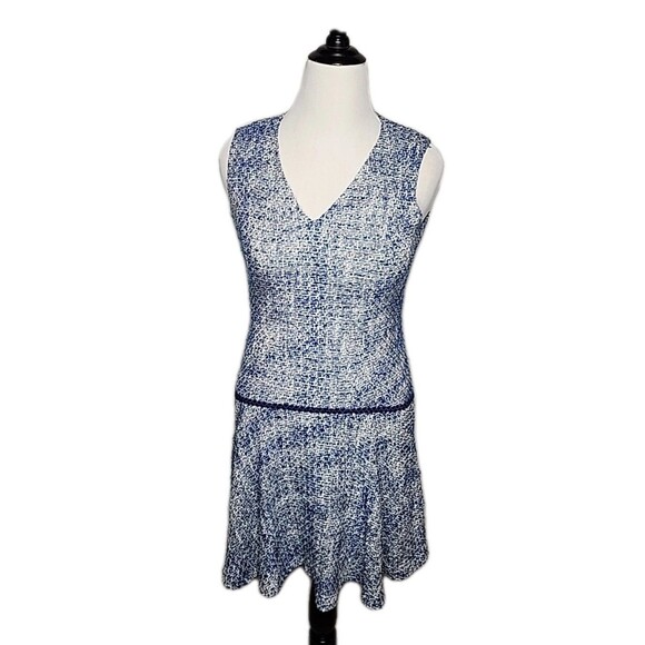 Karl Lagerfeld Drop Waisted Tweed Sleeveless Dress - Blue, White Sz 8