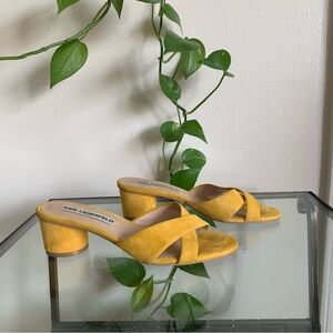 Karl Lagerfeld Fawn Yellow Leather Suede Open Toe Slide Block Heel Sandal Size 6