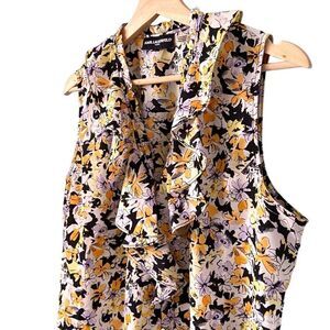 Karl Lagerfeld Floral Ruffle Top in Yellow and Black Size ***SEE MEASUREMENTS***