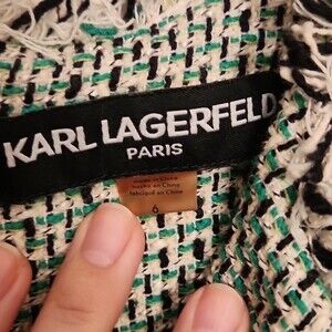 Karl Lagerfeld Green Twead Sheath Dress w/ Braided Chain Belt & Zipper Size 6