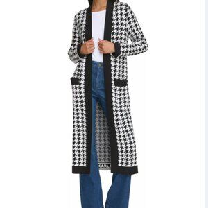 Wide bands outline the houndstooth design of this striking duster cardigan from KARL LAGERFELD PARIS. It layers classic luxe onto countless outfits.