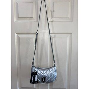 Elevate your style with this chic Karl Lagerfeld bag. The metallic silver finish and quilted design exude modern elegance, perfect for versatile wear.