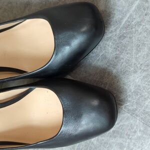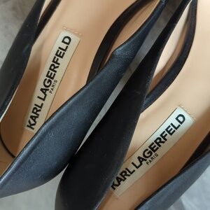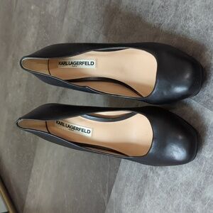 Karl Lagerfeld Leather Slip On Block Pump Black 7.5 luxury classic preppy party